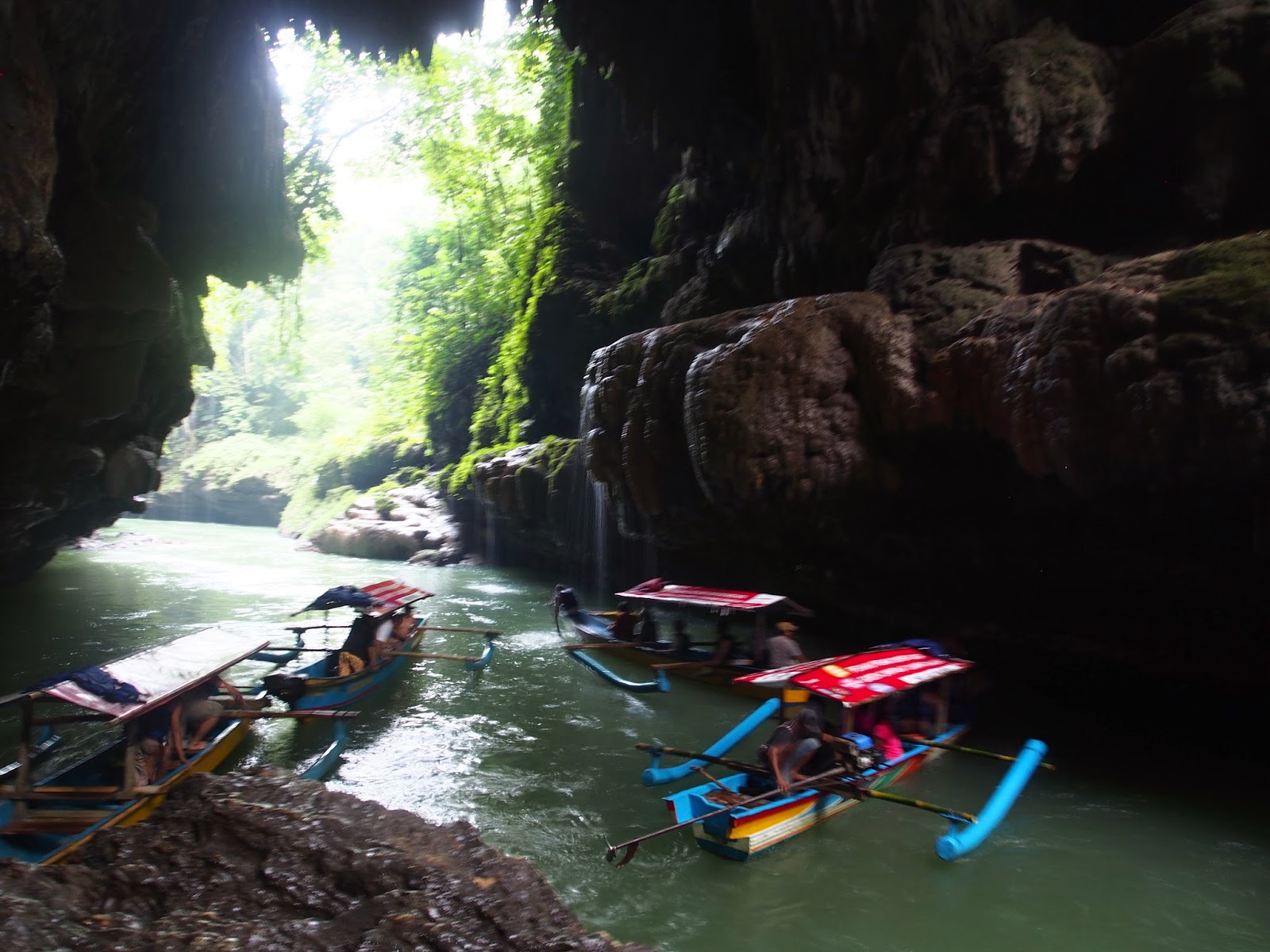 Každopádně okolí Pangandaranu je moc pěkné, a pokud máte cestu kolem, určitě stojí za návštěvu. V jeho blízkosti se nachází takzvaný Green Canyon, kde si můžete půjčit loďku a zajet se podívat k zelené zátoce mezi skalami. Můžete se tam i vykoupat a skočit si z jedné skalky dolů.